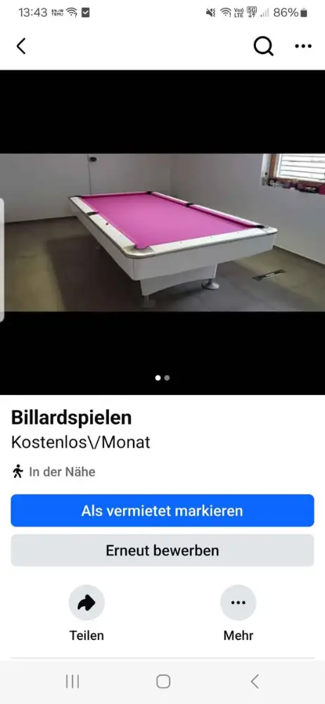 Lust Billardspielen zu lernen? Oder kannst du spielen? Dann komm zu mir spielen. Hab 9 Fuss Tisch im Keller. Alles gratis