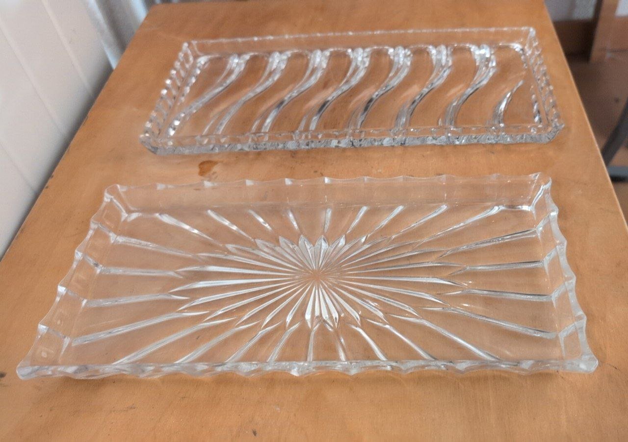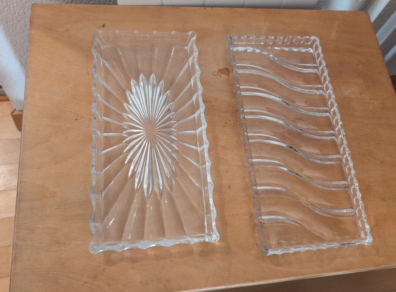Set aus drei dekorativen Glasschalen mit Wellenmuster und geometrischem Design. Verschiedene Grössen verfügbar.