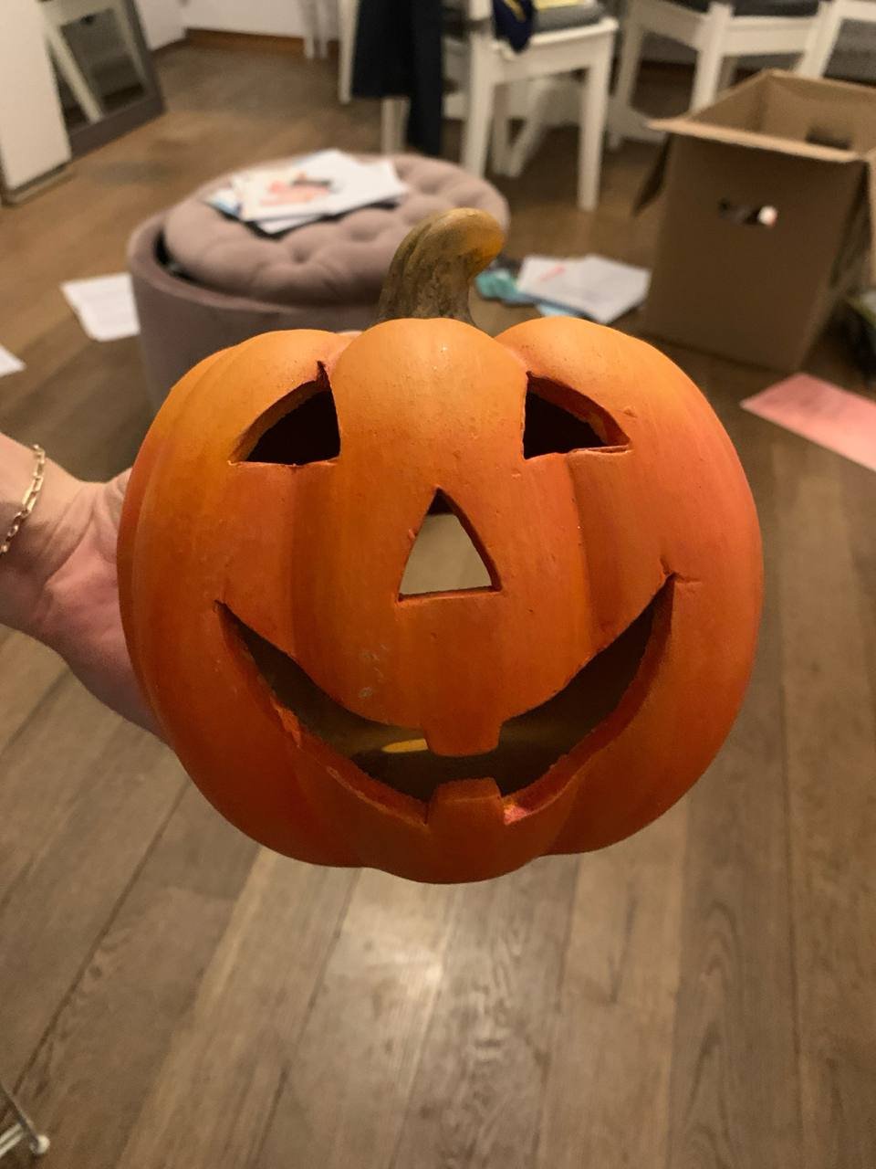 Dekorativer Halloween Kerzenleuchter aus Kunststoff in Kürbisform. Zum Abholen in Wiedikon, Zürich.