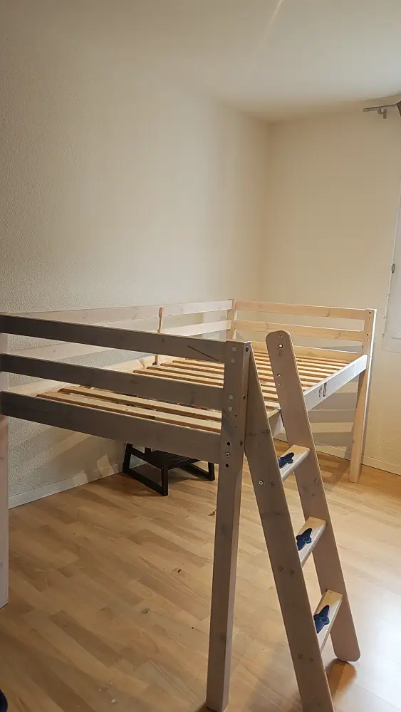 Gebrauchtes Kinderhochbett. Ohne Matratze. Mit Leiter. 80 x 200 cm. Lattenrost in ca. 80 cm Höhe. Gebrauchsspuren vorhanden. Muss in Wetzikon abgeholt werden.