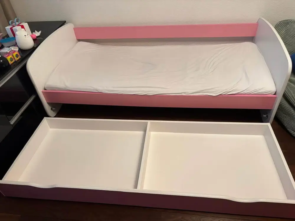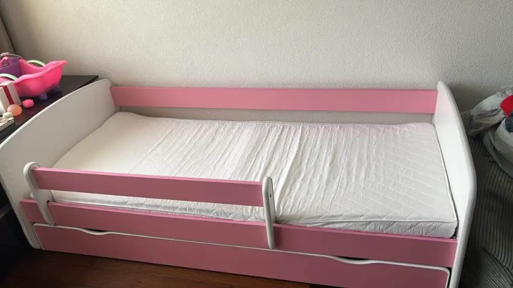 Kinderbett rosa 80x180 Liegefläche mit Lattenrost und Matratze inkl zweites Brett als Rausfallschutz, muss in 3322 Schönbühl abgeholt werden.