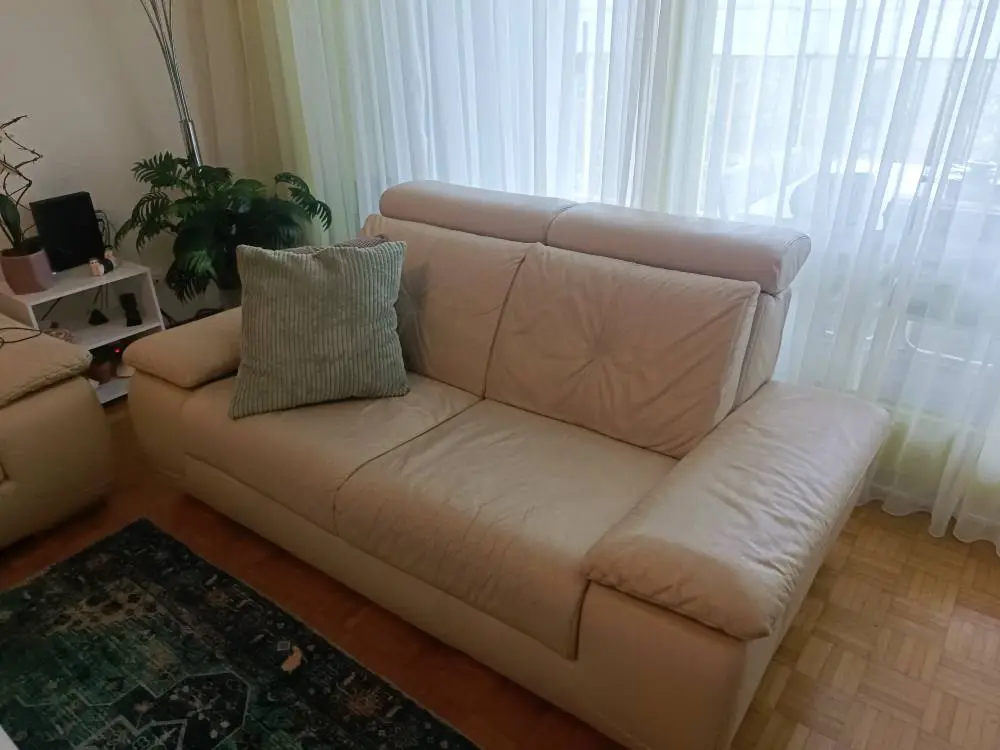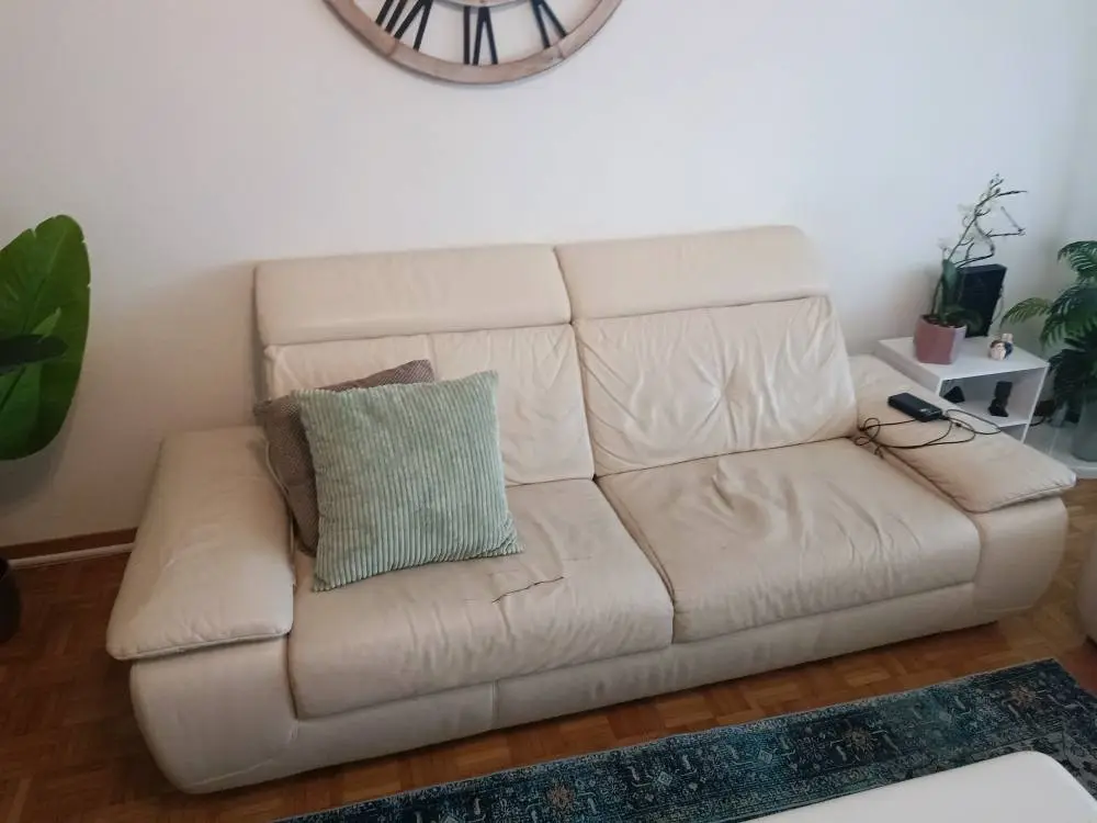 Gebrauchtes Sofa Gratis abzugeben. echt Leder.Auf dem 3er Sofa ein Riss im Leder habe es geklebt, ansonsten im guten Zustand, muss abgeholt werden, mind. 2-3 Personen müssen tragen helfen.