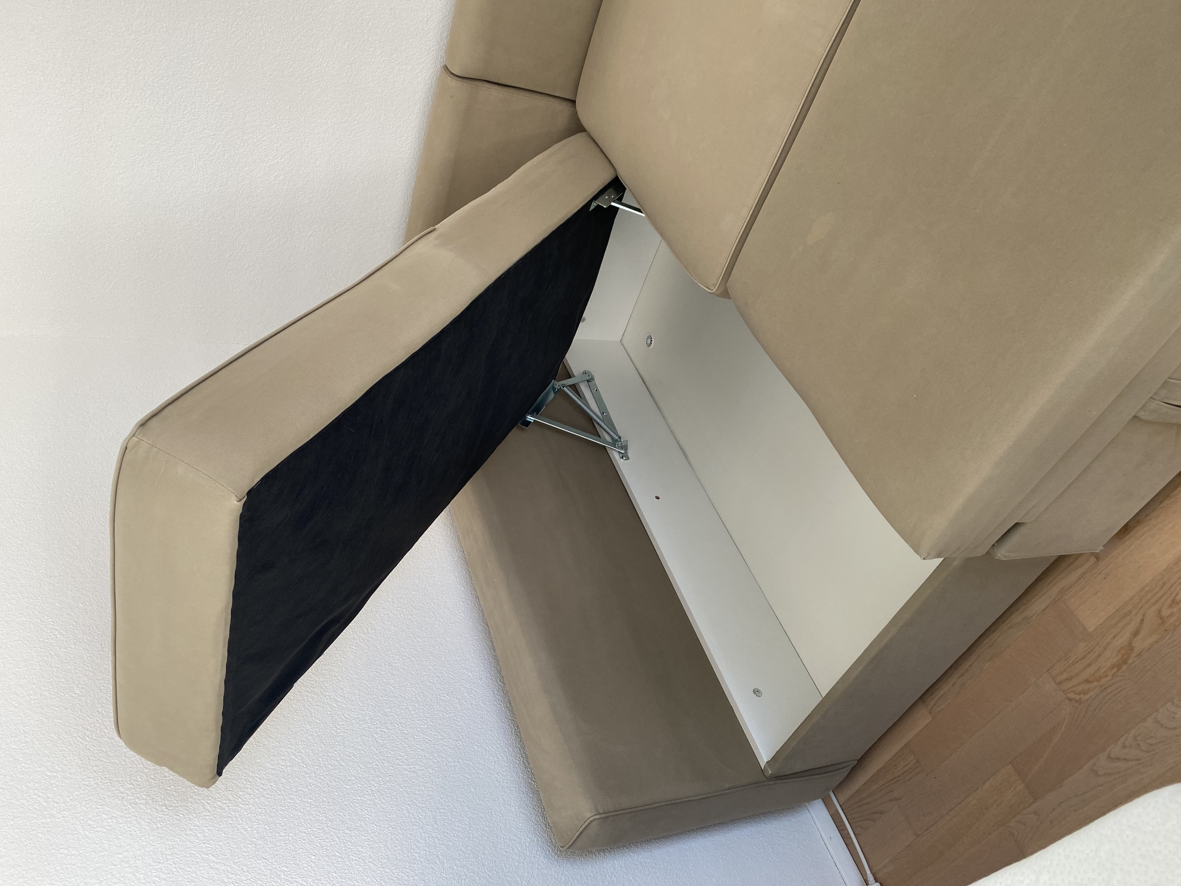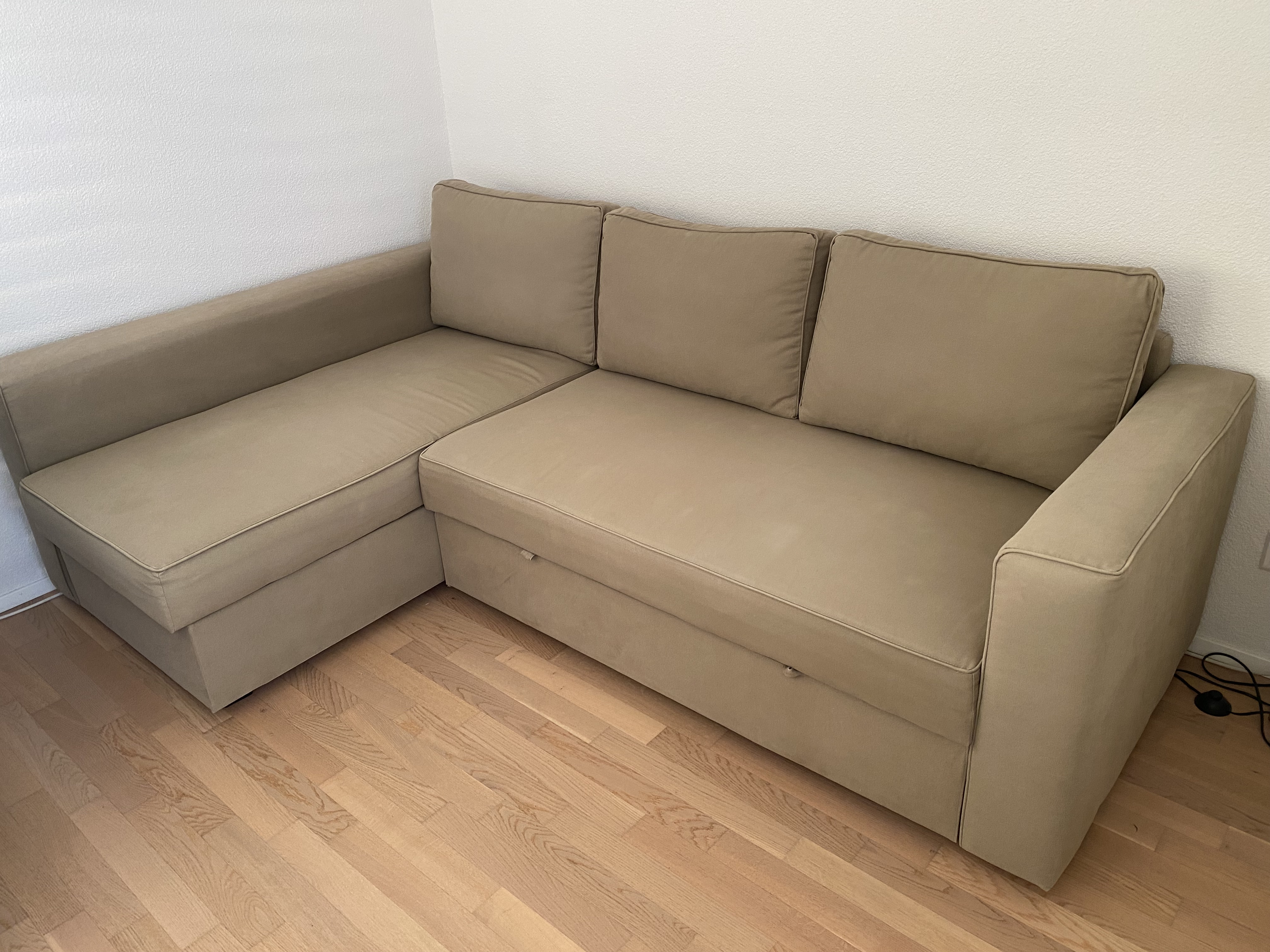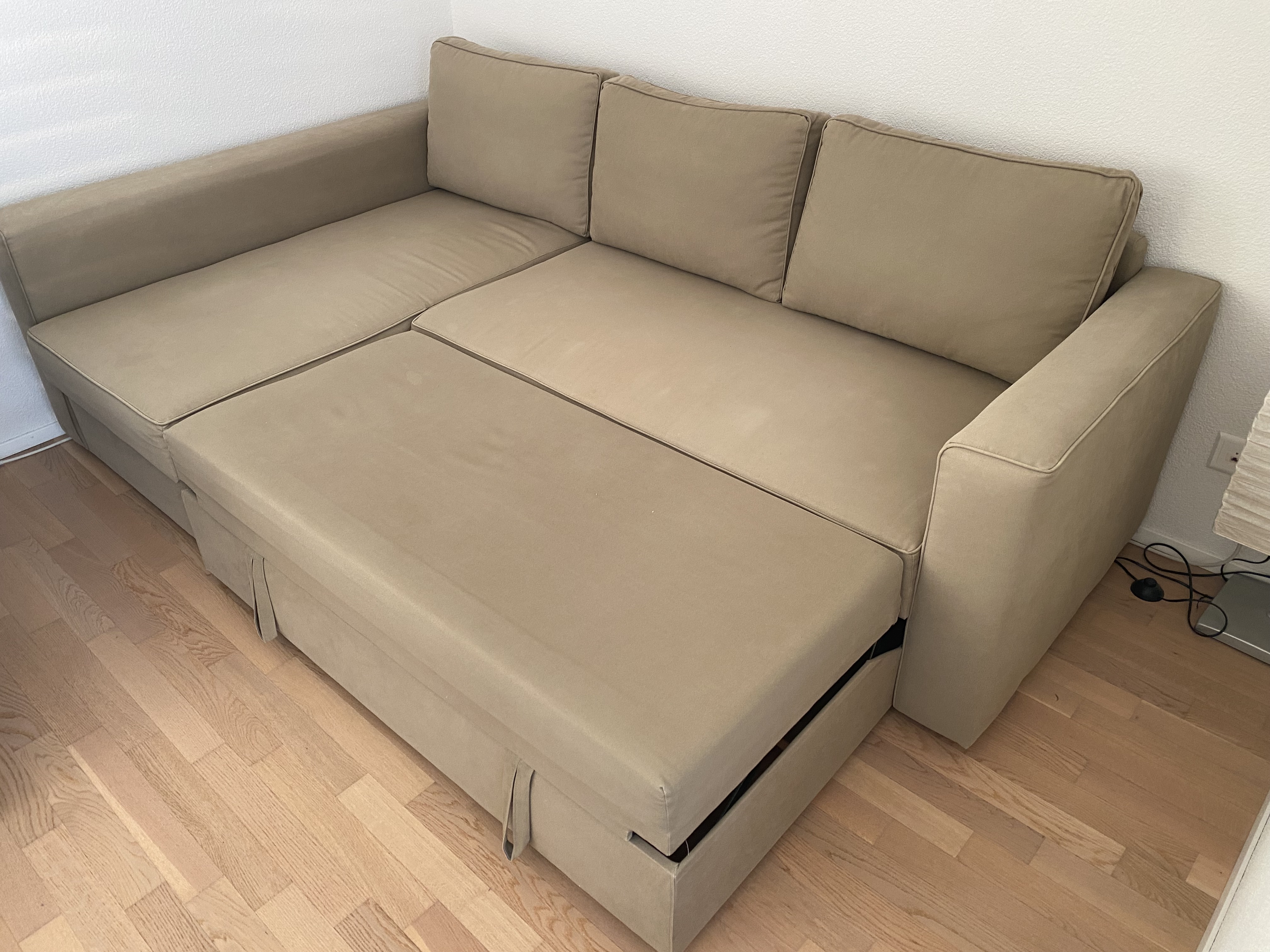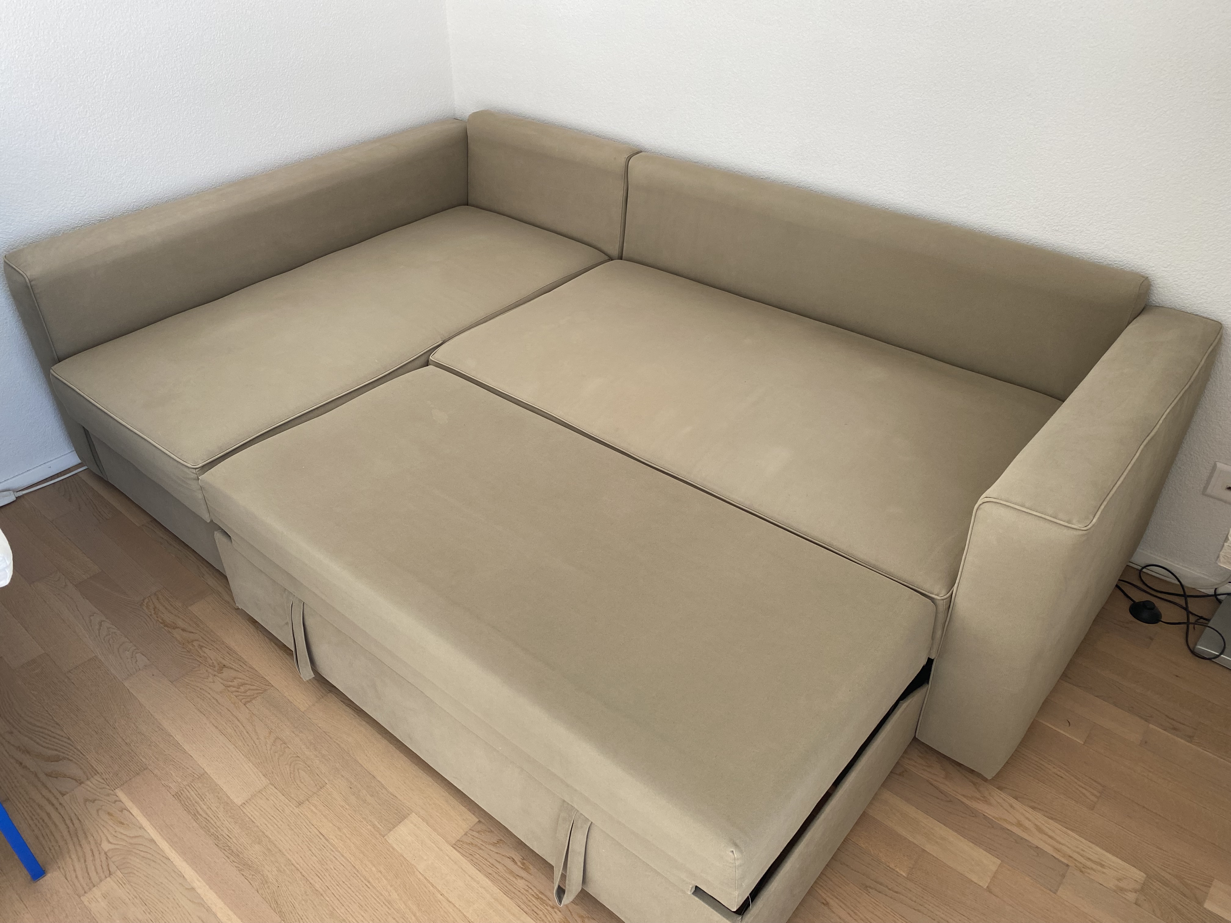 The sofa bed has some signs of wear but is fully functional. It becomes a bed very easily and it has a storage compartment underneath.