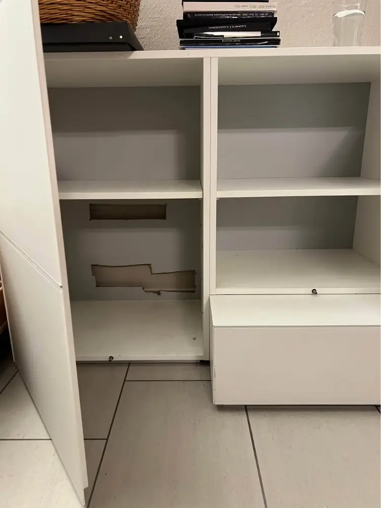 TV Möbel zu verschenken. Im hinteren Teil haben wir Lüftungs-Schlitze rein geschnitten damit es wegen der Elektronik nicht zu heiss wird.