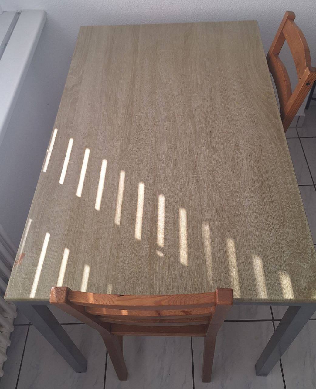 Esstisch mit zwei Stühlen. Maße: 70x110x74 (BxLxH). Alle Teile in gutem Zustand. Gratis zur sofortigen Abholung.