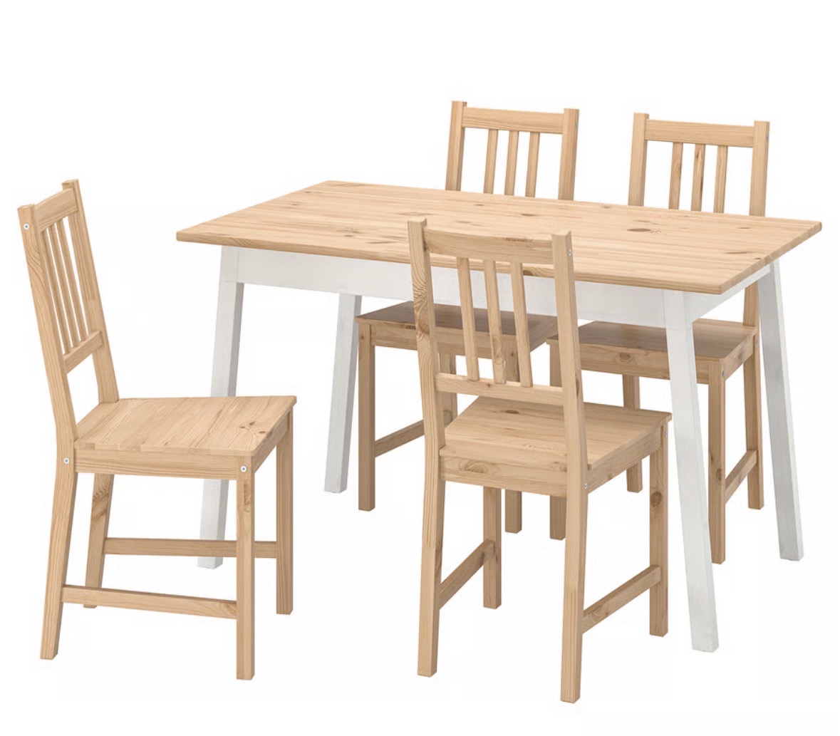 GRATIS IKEA PINNTORP Tisch- und 4-Stuhle-Set in hellbraun/weiß. Ein klassisches Esszimmer-Set mit viel Charme, ideal für WG, Küche oder Essbereich. Inkl. Tisch + 4 Stühle robust für täglichen Gebrauch Farbgebung: hellbraun / weiß gebeizt 2 Stühle sind nicht zusammen gebaut 9 Abholung in St.Gallen