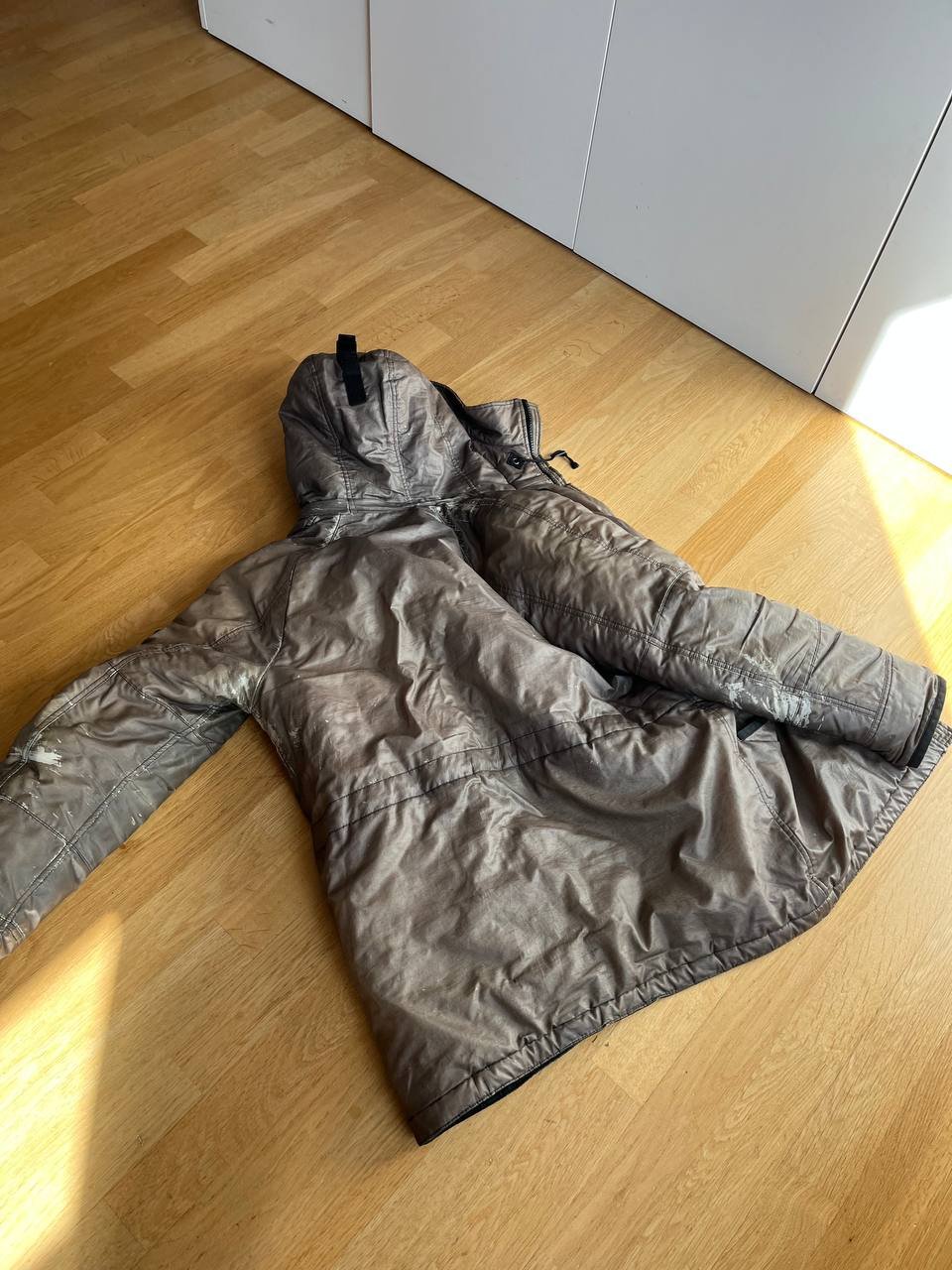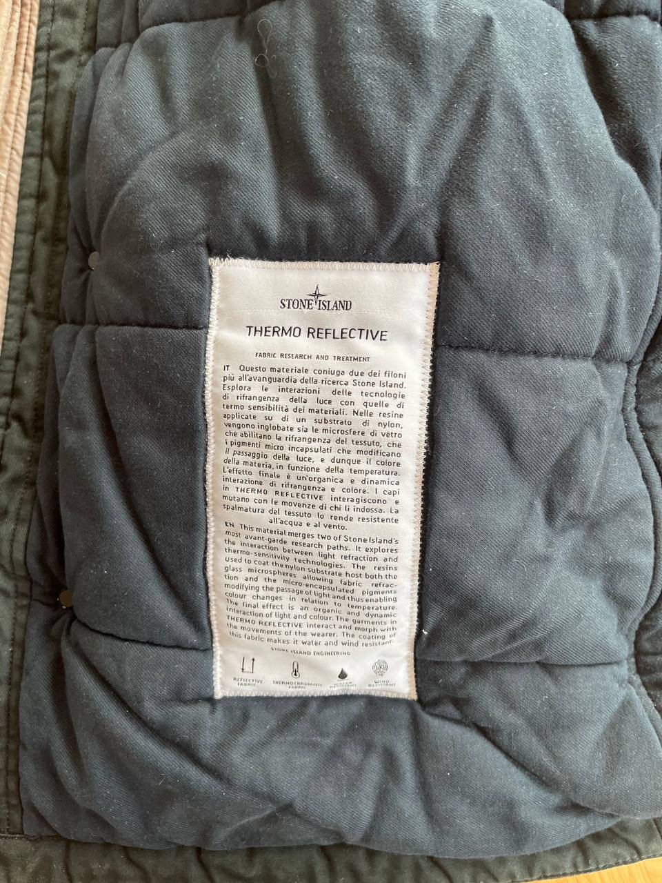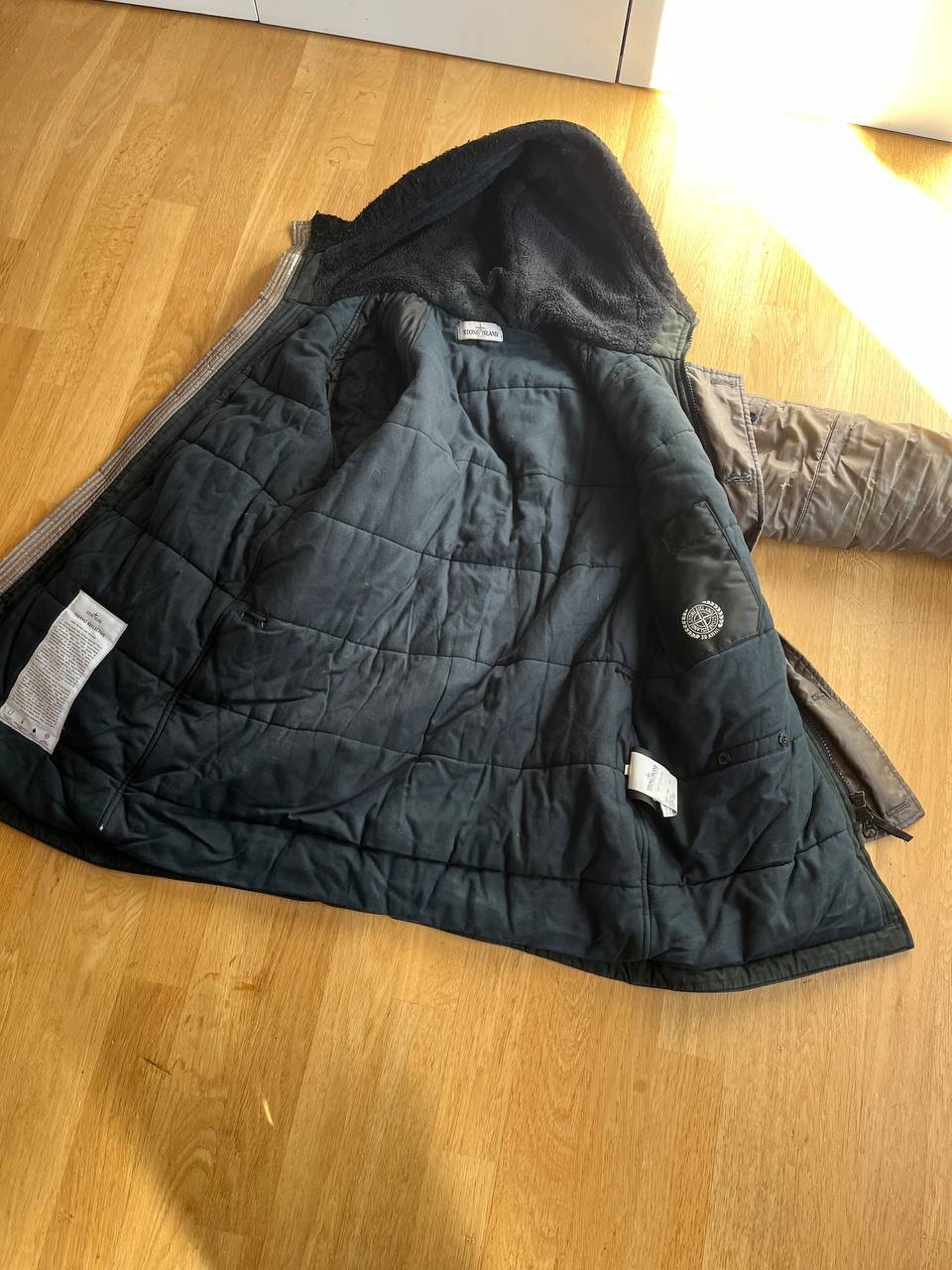 Gebrauchte Stone Island Winterjacke Größe L. An einigen Stellen etwas abgewetzt. Thermo Reflective Technologie, mit Kapuze.