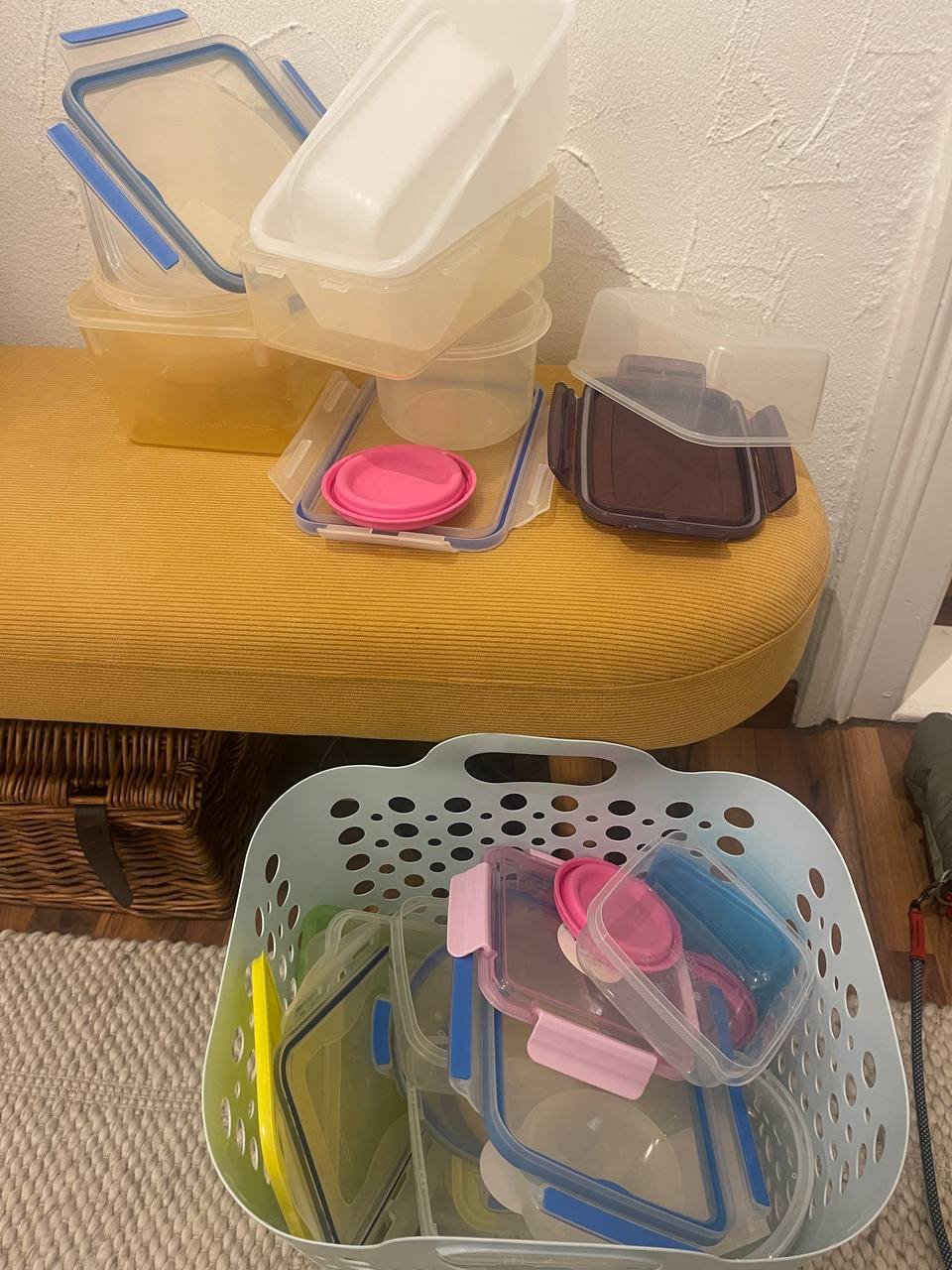 Verschiedene Tupperware Behälter gratis/kostenlos zum Abholen. Mehrere Boxen mit Deckeln in verschiedenen Farben und Grössen.