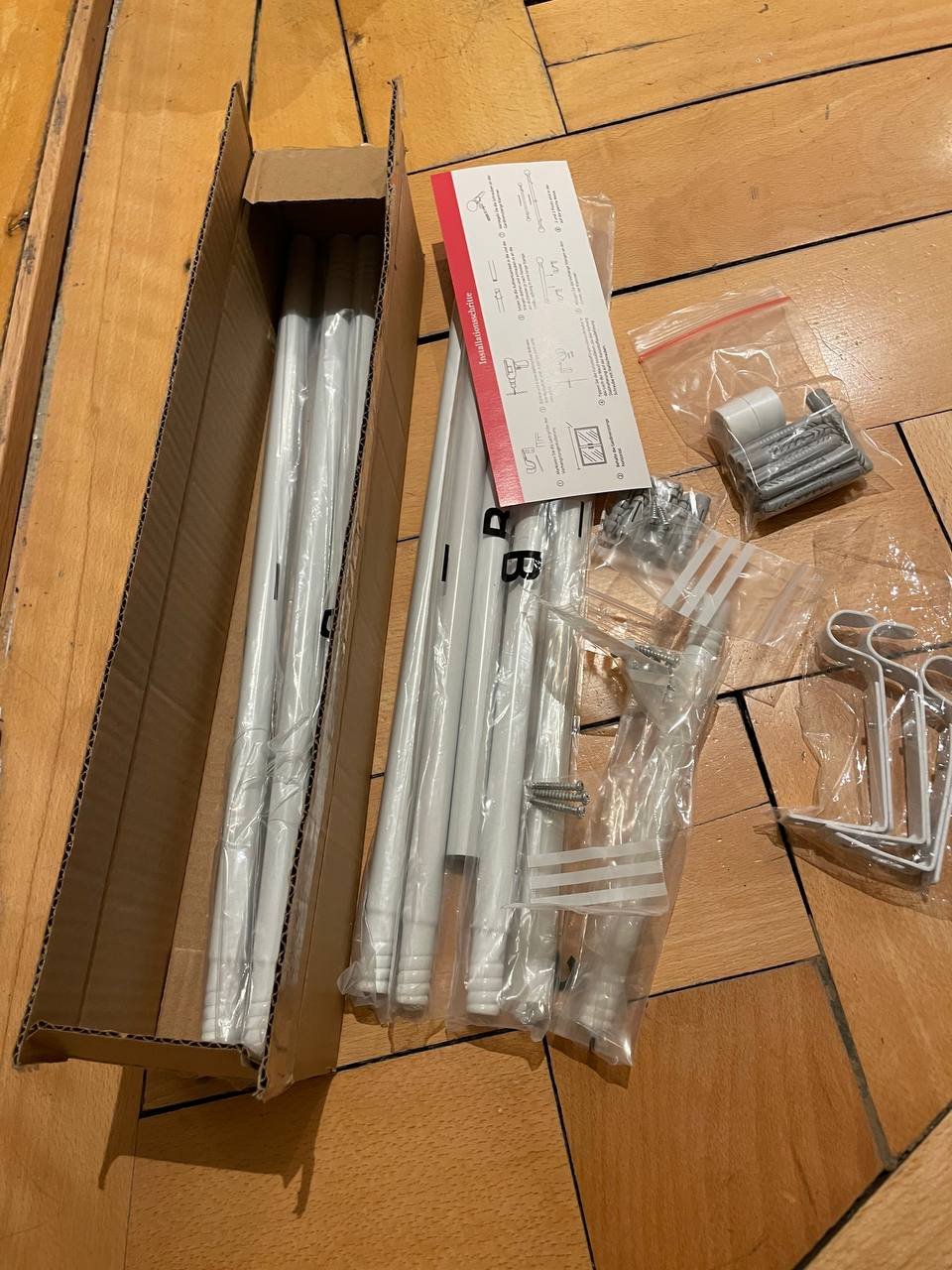 Vorhangstange individuell verstellbar mit Befestigungsmaterial und Montageanleitung. Im Milchkasten abzuholen.