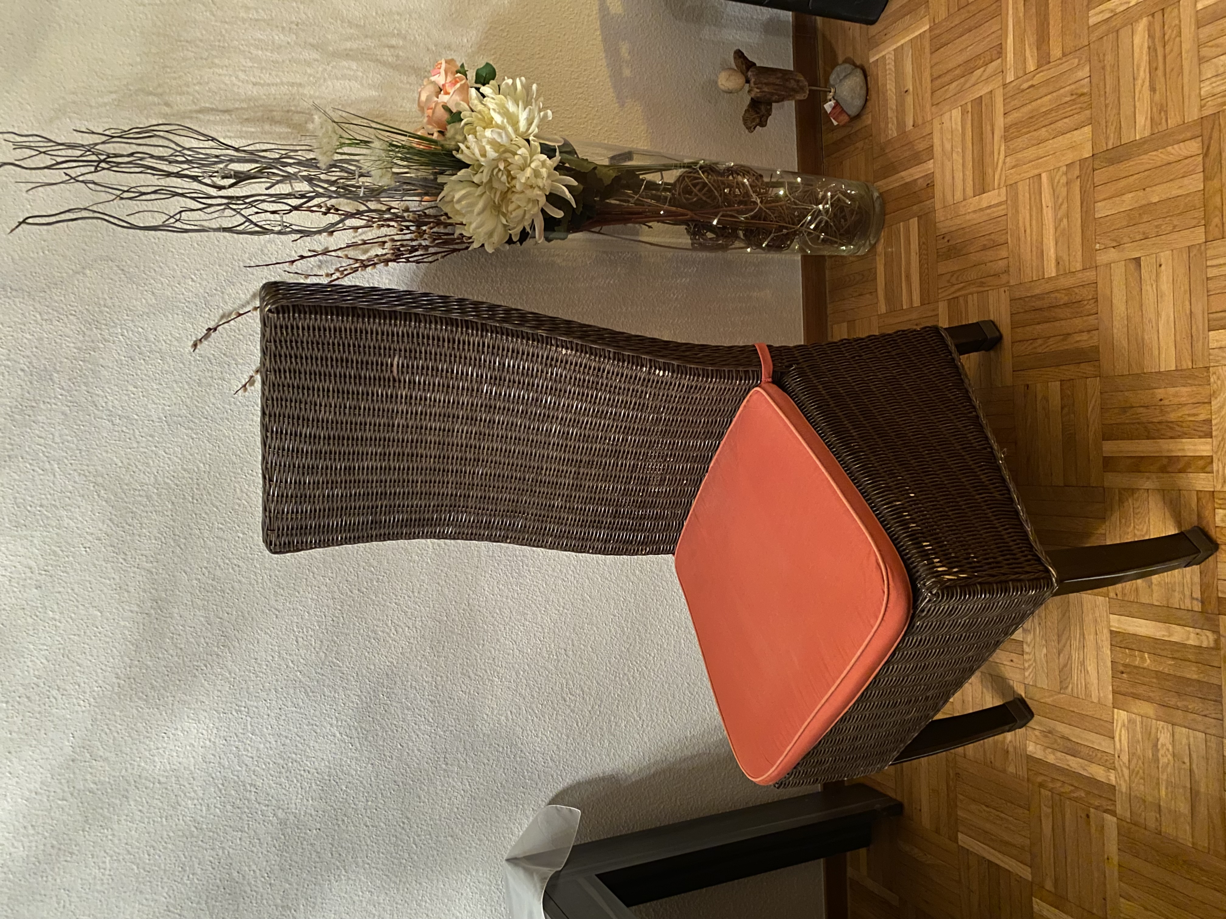 Vier Rattan-Stühle mit hoher Rückenlehne und abnehmbaren Sitzkissen zu verschenken. Gut geeignet für Wintergarten, Balkon, Gästezimmer oder auch für ein DIY-Projekt. Abholung in Aadorf TG Mögliche Zeiten: – abends 18–20Uhr - nach Absprache – am Wochenende - nach Absprache Schreib mir wann du sie ansehen/abholen möchtest.
